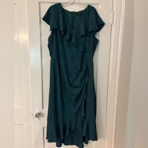 Lane Bryant Teal Ruffle Faux Wrap Midi Dress Size 22