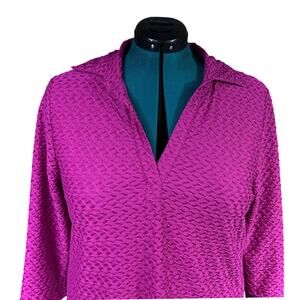 Lane Bryant Textured 3/4 Sleeve Collared Tunic Blouse Plus Size 14/16 Hot Pink