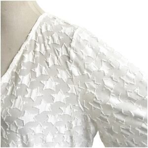 Lane Bryant Textured Peplum Stars Blouse Size 14/16 White V-Neck Button Playful