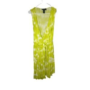 Lane Bryant Tie Dye Wrap Dress Women 14/16(1X) Bright Neon Sundress