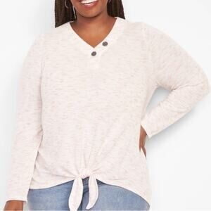 Lane Bryant Tie-Front Hacci Top Button Detail Pink 14/16