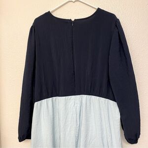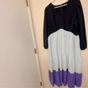 Lane Bryant Tiered Crepe Maxi Dress Blue Colorblock Long Sleeves v neck 20P