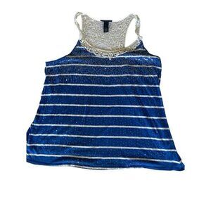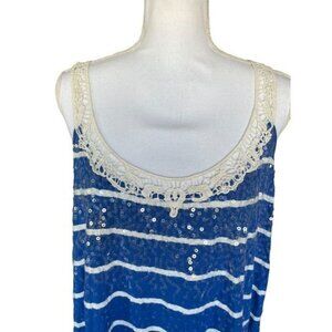 Lane Bryant Top Blouse Shirt Plus Size 22 24 Blue White Lace Clear Sequin
