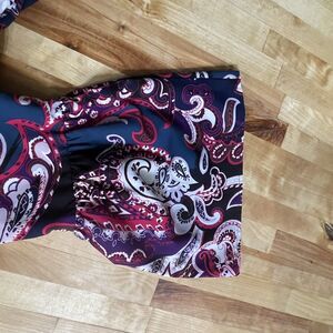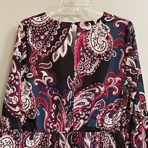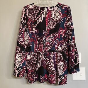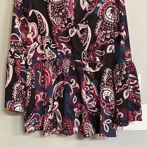 Lane Bryant Top Multicolor Paisley Print Long Bell Sleeve Wrap Blouse sz 14 EUC.
