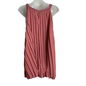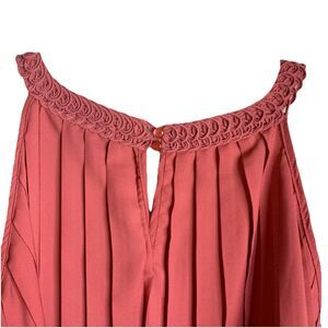 This Lane Bryant top is a stylish and versatile pleated tunic designed for women in sizes 18/20. The sleeveless design and crochet applique add a touch of silver accents to the pink chiffon fabric, making it perfect for various occasions such as travel, weddings, parties, and casual or workwear. With a relaxed fit and lightweight stretch, this top is comfortable for all seasons and can be machine washed for easy care. Perfect for adding a bohemian or holiday-themed flair to your wardrobe with a designer touch.