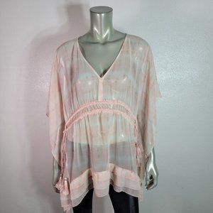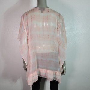Lane Bryant Top Plus Size 14/16 V-Neck Ruffle Tassel Batwing Sleeve Sheer Pink
