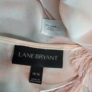 Lane Bryant Top Plus Size 14/16 V-Neck Ruffle Tassel Batwing Sleeve Sheer Pink Casual Pullover