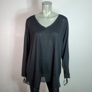 Lane Bryant Top Plus Size 18/20 Metallic Chiffon Hem Stretch Long Sleeve Black Casual Pullover V-Neck