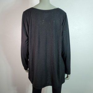 Lane Bryant Top Plus Size 18/20 Metallic Chiffon Hem Stretch Long Sleeve Black