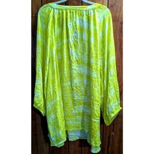 Lane Bryant Top Shirt Blouse Plus Size 38/40 7X Yellow White Tie Dye Long Sleeves Career Multicolored Tunic Cruise Club Resort Church Wear Elastic Sleeve Casual New with $59.99 tags
