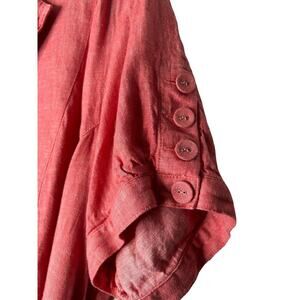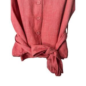 Lane Bryant Top Size 18/20 Peach Linen Blend Short Sleeve Button Up Tie Belt