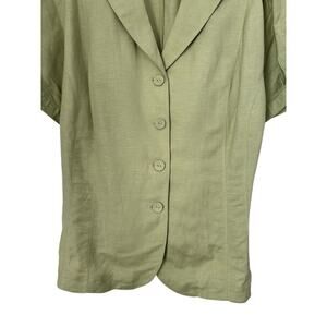 Lane Bryant Top Size 22/24 Light Green Linen Blend Short Sleeve Button Front Tie