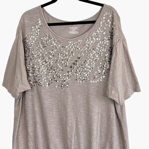 Lane Bryant Top Tee Blouse Sequined Design Taupe Color Size 18/20 Banded Bottom