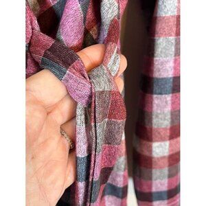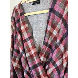 Lane Bryant Top Women 18 Pink V Neck Gray Plaid Pullover Peplum Tie Waist Soft