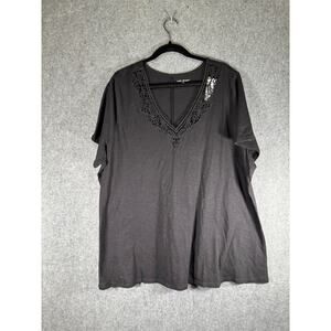 Lane Bryant Top Women 22 Black Short Sleeve V Neck Embroidered Relax Casual