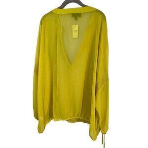 Lane Bryant Top Women 22 Yellow Pullover Sheer Crochet Peasant Boho Western 80s