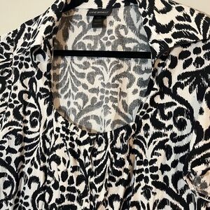 Lane Bryant Top Women 26 Black Floral Neutral Minimalist Boho Western Retro 80s