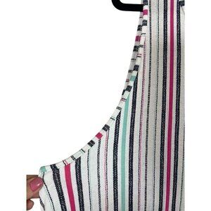 Lane Bryant Top Women 26 White Striped Tank Summer Rainbow Beach Swim Retro 80s