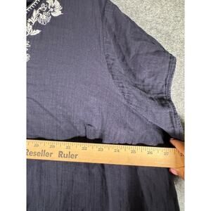 Lane Bryant Top Women 28 Navy Blue Embroidered Short Sleeve Relax Boho Feminine