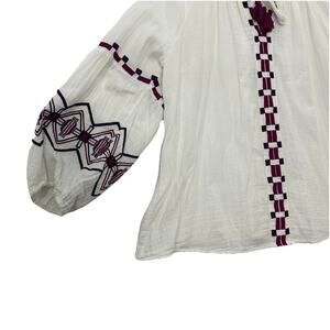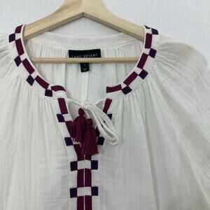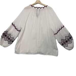 Lane Bryant Top Womens 18 White Gauzy Embroidered Tasseled Cottagecore Boho