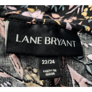 Lane Bryant Top Womens 22/24 Black Floral Surplice Wrap Peplum Long Sleeve Boho