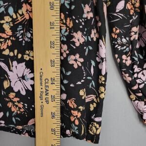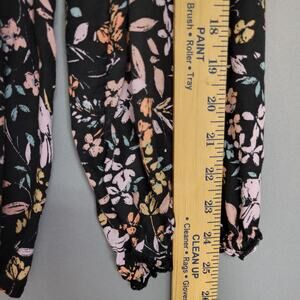 Color/Pattern: Black base with multicolor floral print (pink, peach, yellow, light blue)