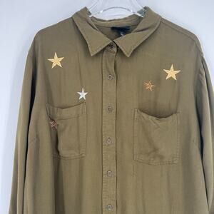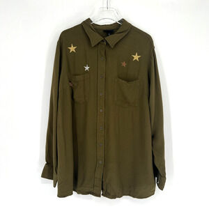 Lane Bryant Top Womens 24 Green Star Embroidered Classic Button Down Blouse