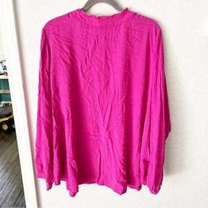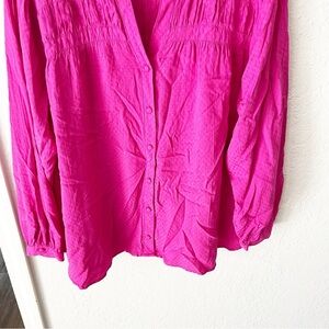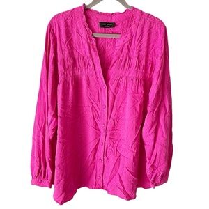 Lane Bryant Top Women's 24 Hot Pink Magenta Button Front Peasant Blouse Boho