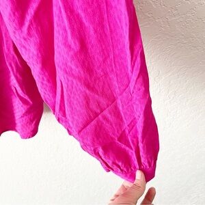 DETAILS: Lane Bryant Top women's 24, hot pink button front, blousy sleeves, rayon, machine wash.