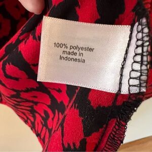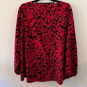 Lane Bryant Top. Plus Size. Red & Black. Animal Print. Ruffle V-Neck. Size 18. Elastic at wrist. 100% polyester. Length from shoulder to bottom is 28”. Armpit to armpit is 26”