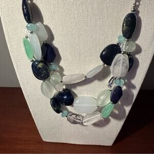 Lane Bryant Triple Strand Beaded Statement Necklace White Green Blue Beads