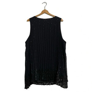 Lane Bryant Tunic Sleeveless Accordion Pleated Top Tassels Black Polka Dot Relaxed Fit Women's Plus size 28.