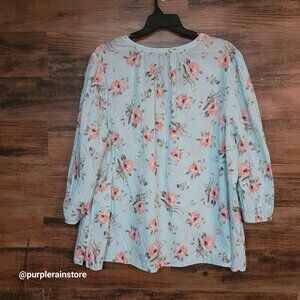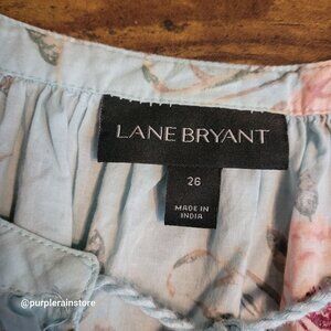 Lane Bryant Tunic Top Size 26 Floral Tassel Tie Blue Green Pink Feminine Country