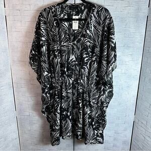 Lane Bryant Tunic Womens Vneck black white Beaded Trim Kimono kaftan plus size