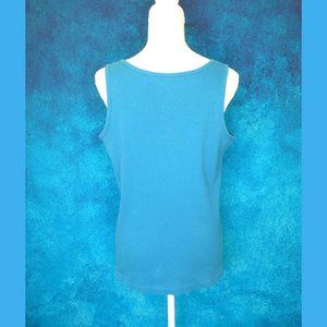 Pretty turquoise blue ribbed tank with lace on front neckline.