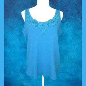 Lane Bryant Turquoise Ribbed Tank Lace Neck 14/16