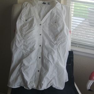 Lane Bryant professional button-up blouse two pocket blouse shirt top. Imagine walking into the boss's office requesting a raise, if you wear this top then you will be seen as professional but not over the top. It is a great middle of the road choice piece. You will love this piece. One small stain see photos. No holes or flaws. Sleeves can be left down or rolled and buttoned.