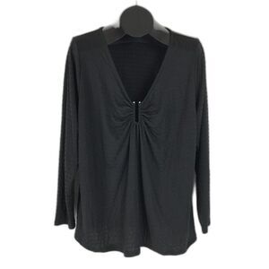 Lane Bryant U-Ring Ruched Blouse Women's Plus Size 22/24 Black Textured Stretch