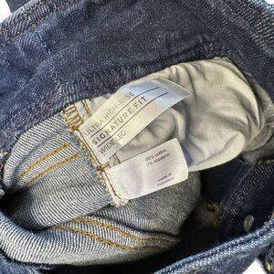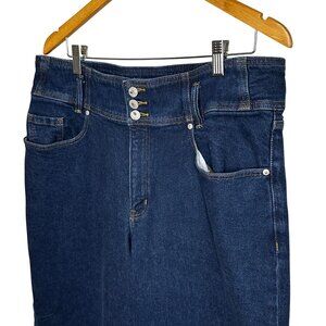 FEATURES: Ultra high-rise signature fit wide leg plus size jeans in a dark wash. Classic 5-pocket design with 3-button and zip closure. Perfect for fall.