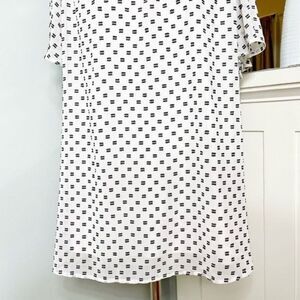 Lane Bryant Textured Short Sleeve Blouse. Ruffled V-neck with flutter sleeves. Sleeves and shoulders are sheer, otherwise fully lined. White top with black textured dots. Perfect with dress pants, a skirt or jeans! Like new. Plus Size 18.