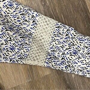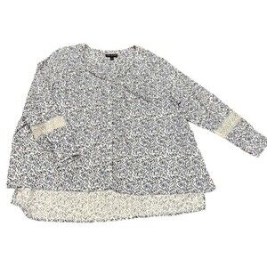 Lane Bryant V Neck long sleeve button down blouse with lace details on the sleeves.