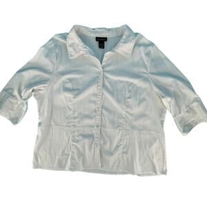 Lane Bryant V-Neck 3/4 Sleeve Collared Button Up Shirt White Plus Size 22/24