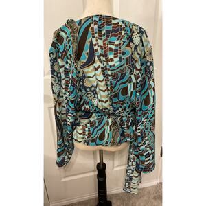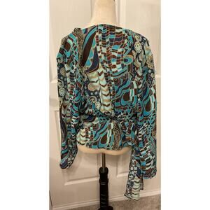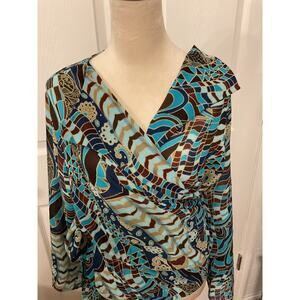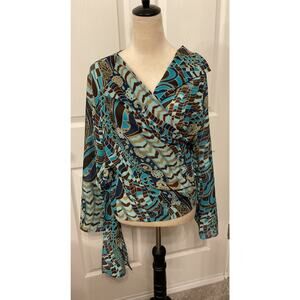 Lane Bryant V-Neck Geometric Abstract Semi-Sheer Wrap Top