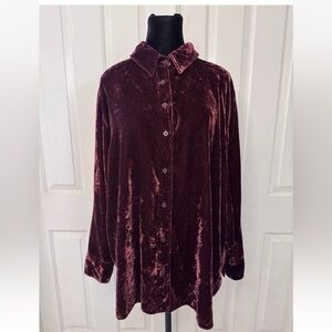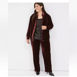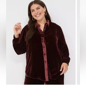 Lane Bryant Velvet Top Blouse Sz 16 Red Cranberry ButtonDown Dressy Goth Royalty