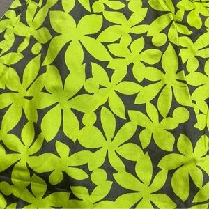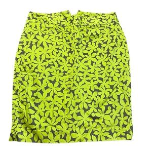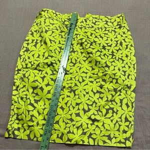 Bold floral skirt with neon yellow and brown design. Eye-catching and stylish.