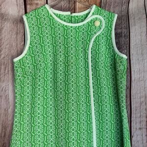 Lane Bryant Vintage Dress Polyester 1960s Mod Green White Shift Dress Classic