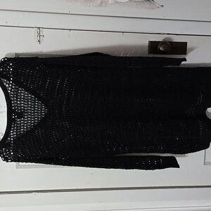 Lane Bryant Vneck Black Sequin Open Hole Knit Women's Sweater 14/16
