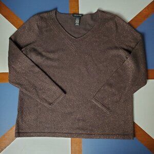 Lane Bryant V-neck Sweater 18/20 Brown Metallic Wool Blend Classic Party Holiday