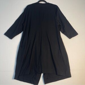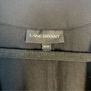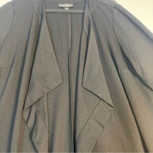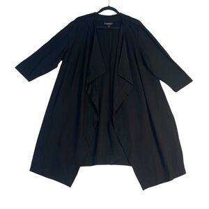 Elegant black cardigan by Lane Bryant. Features a flowing open front. Perfect for layering.