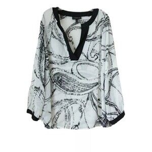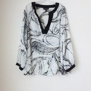 Lane Bryant White Black Contrast Semi-sheer Top 14/16